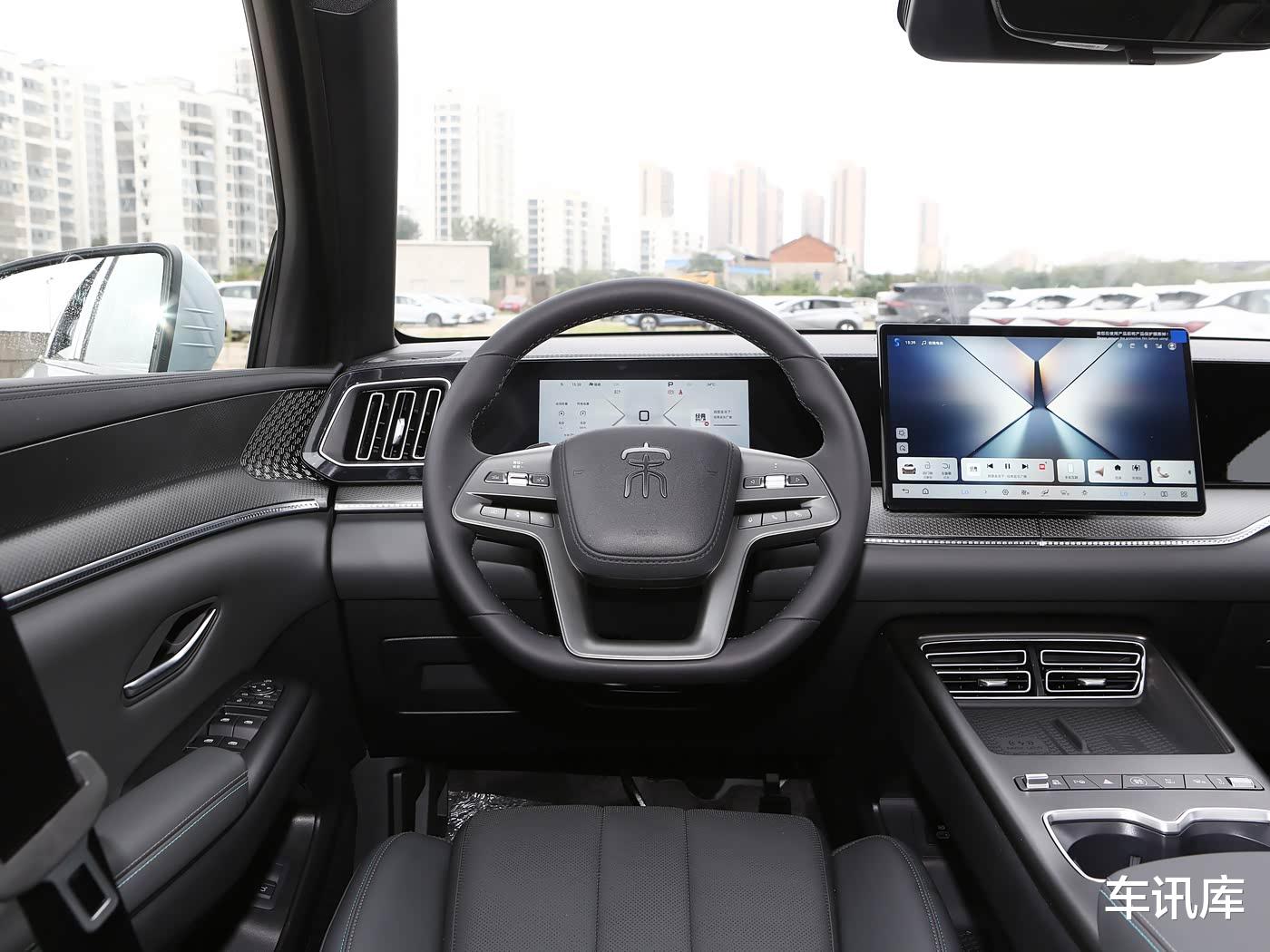 相比外观,26款比亚迪宋Pro DM-i的内饰变化更大,整体依旧是采用现款极简设计风格,搭载了大尺寸的悬浮式中控屏和液晶仪表盘,再加上大面积的黑色钢琴饰板,看起来特别有质感,整体的科技感也非常足。该车跟现款车型的最大不同,就是采用了全新的怀挡换挡方式,前排中间扶手台的实体按键也进行了重新排列,整体的空间通透性要更强。