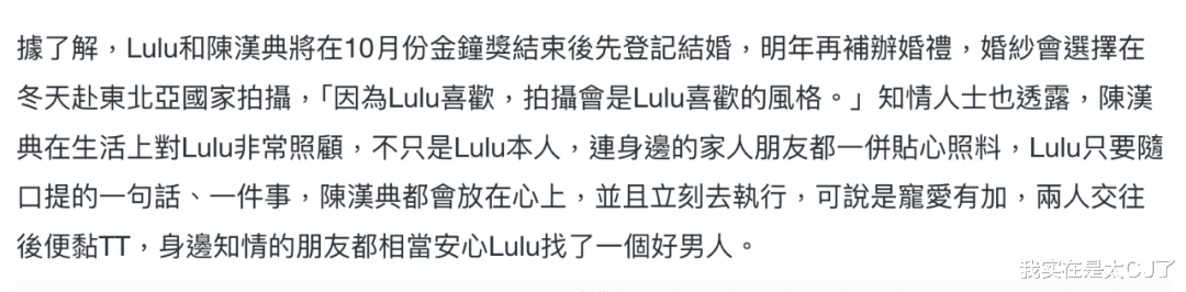 而对长期关注台娱的那部分网友来说,这一天重磅shock来自万年无聊陈汉典,竟然无预警官宣自己要和Lulu黄路梓茵结!婚!了!