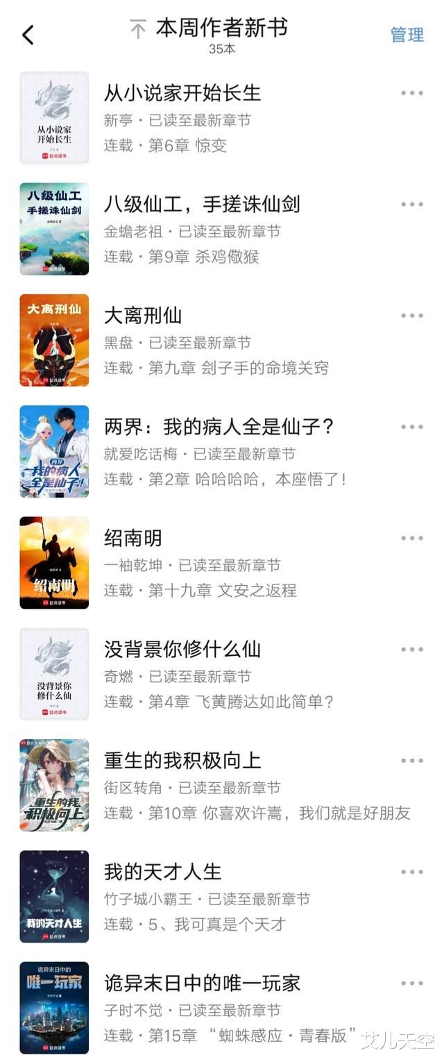 ①新亭《从小说家开始长生》,网文作者穿越超凡世界,从发表的小说中化虚为实继承诸多角色拥有的天赋资产的类型故事,就是不知道能不能顺利写完。