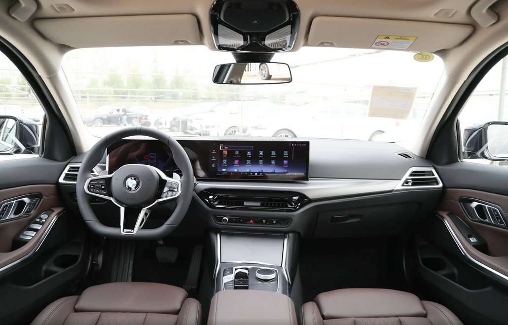 进入宝马3系的座舱,相比之前多了几分精致感,空调出风口处的氛围灯又能进一步提升该属性。中控台上保留了12.3英寸+14.9英寸双联屏,中间有黑色的衔接,不过深色模式下看着并不明显。该款车的UI界面清爽,所需功能一触即达,同时换挡机构处还配备了一个旋钮,用来控制车机,对于习惯了智能设备的朋友,旋钮属实有点儿多余。粗壮的方向盘采用平底式设计,两侧的多功能按钮较为丰富,自适应巡航、语音助手等都能控制,便捷程度相对较好。该款车未配备高算力芯片,车机功能主打的就是实用,CarPlay手机映射便于苹果用户互联,部分型号花3000元可选装5G网络,这又不会影响到车辆性能,所以预算一般的话,选装意义不大。