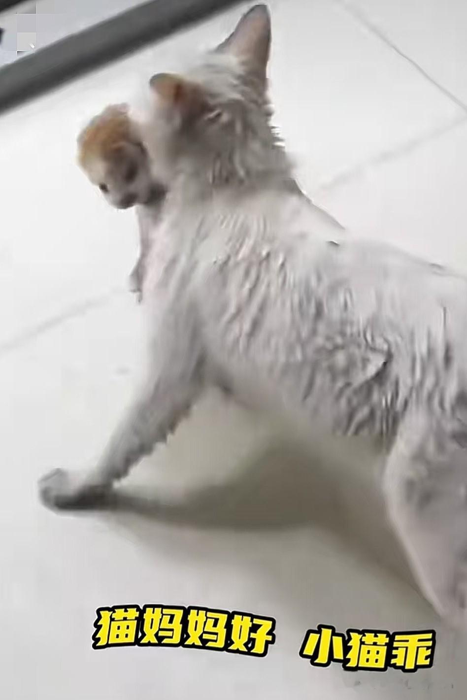 雨夜中,积水淹没了猫窝,一只猫妈妈在深水里艰难跋涉,嘴里叼着小猫是它全部的牵挂。它马不停蹄的将小猫叼进屋内,自己浑身湿透,只为给孩子一个干爽的家。