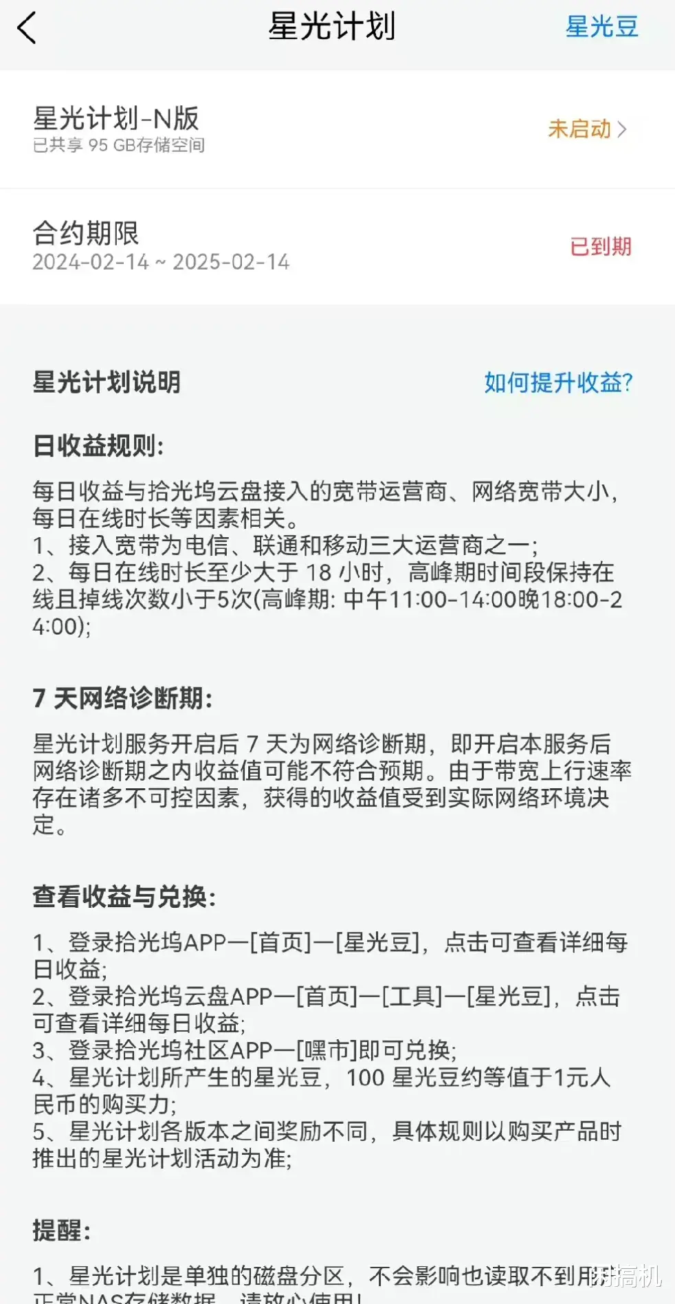 至于星光计划是啥?其实就是利用闲置带宽跑收益,跟京东无线宝云路由等路子差不多,前几年这种“免费加倒贴”的戏码很管用,但不适合百兆宽带家庭,会拖累网速的。