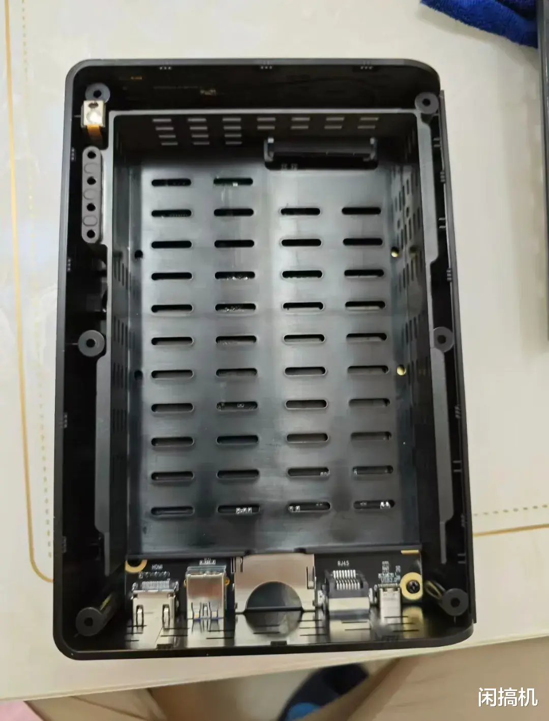 除了白色版外,它还有灰色和黑色版本,三围是192x135x43mm,开盖后可塞下3.5英寸机械硬盘,最大支持20T单盘,也向下兼容2.5英寸的机械/固态硬盘。