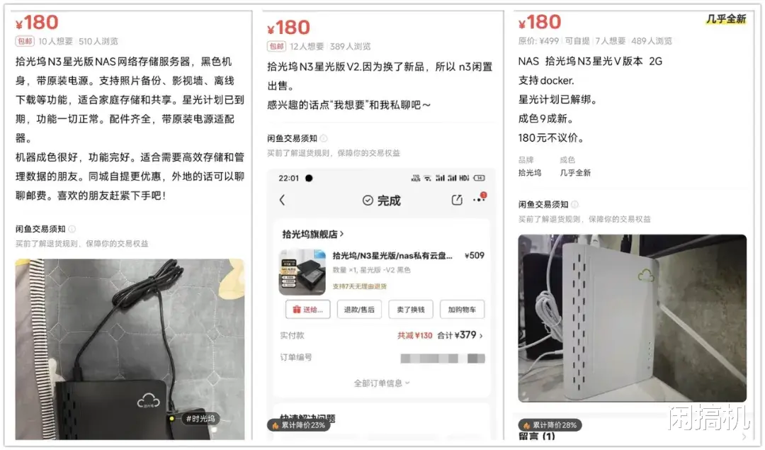 至于二手价格,我随便一搜就是180元,这应该是合理价位了。此外拾光坞还有个N3 Plus版本,内存升到了4G,还增加了散热风扇,但二手价格要三百左右,我就单独提一嘴。