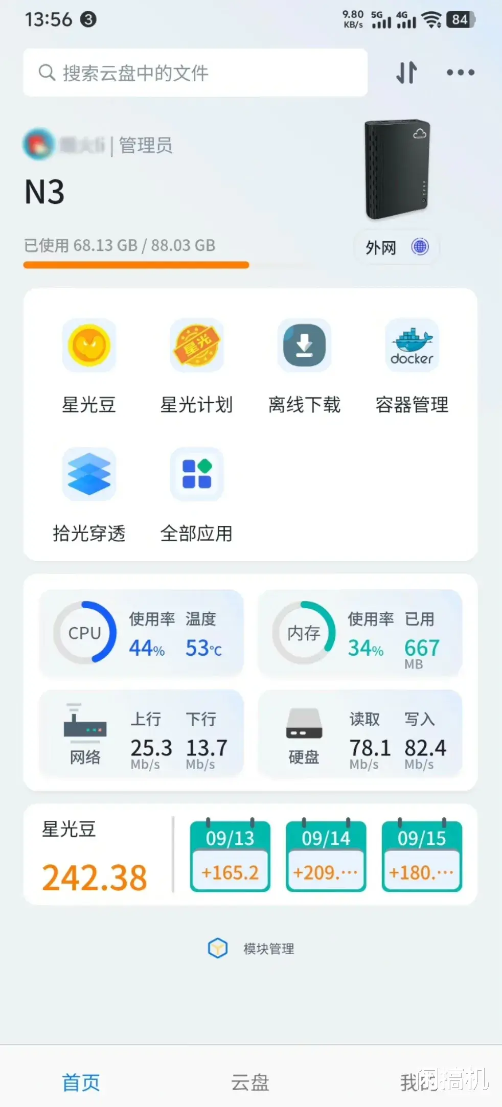 拾光坞N3应该是2023年的产品,有标准版和星光版两种,主要区别是星光版额外配备128G的eMMC存储用来跑“星光计划”,但跟用户盘数据隔离,星光计划到期后128G存储可以转为用户空间。