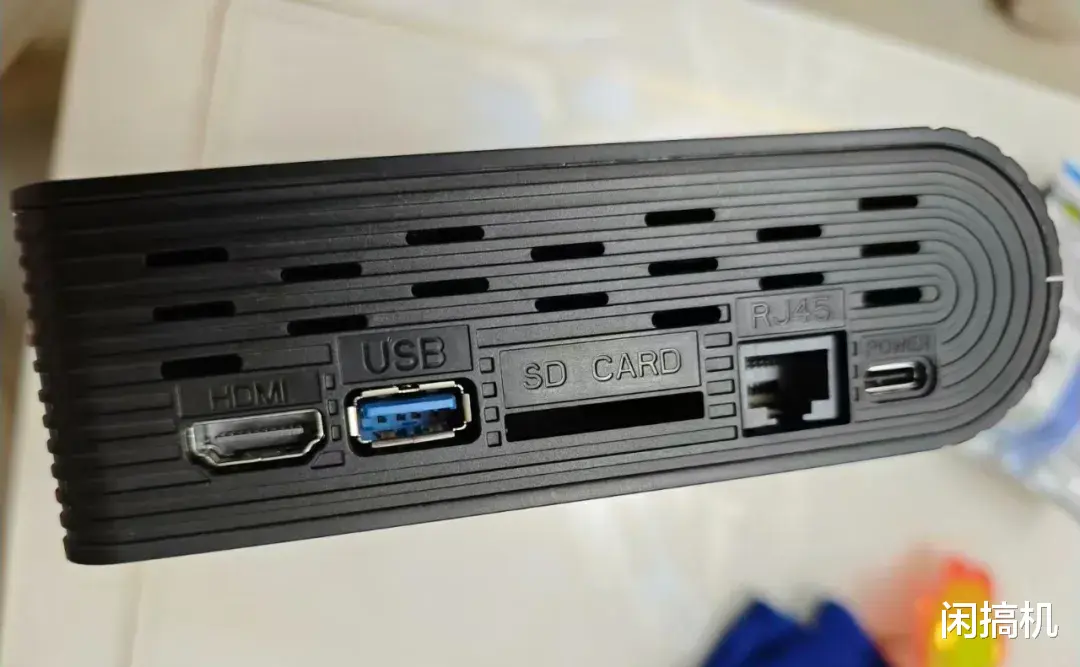侧面分别是HDMI 2.0接口、USB 3.0接口、SD卡槽、RJ45千兆网口和Type-C电源口,该有的都有,可卧放也可立放。