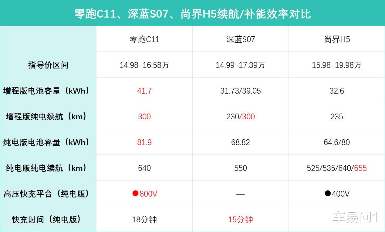 零跑C11、尚界H5续航越级,深蓝S07略微掉队