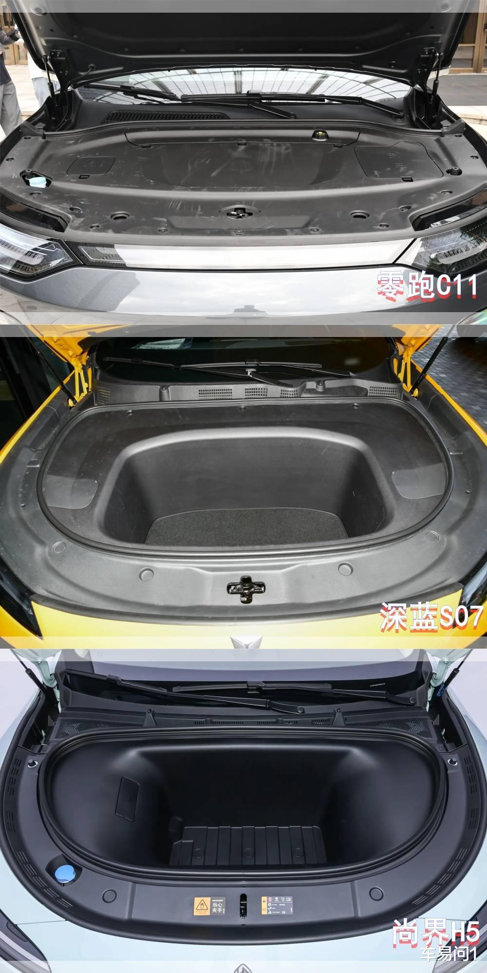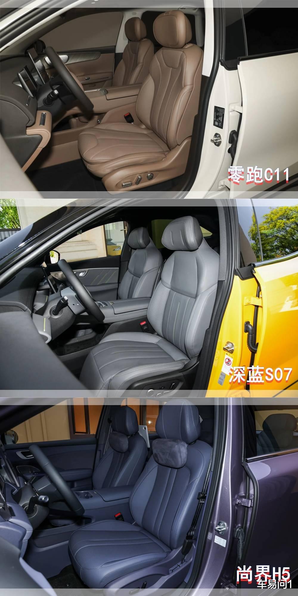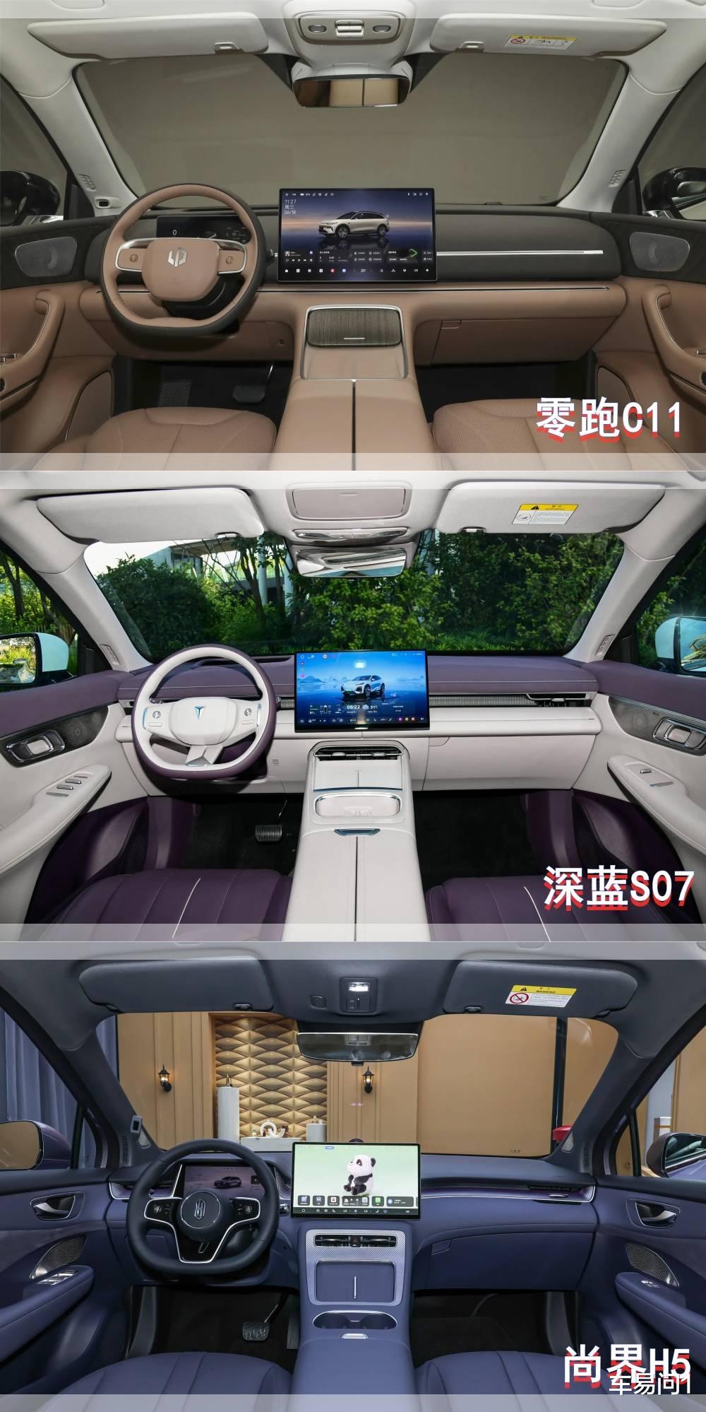 内饰对比,零跑C11、尚界H5符合主流审美,深蓝S07另辟蹊径