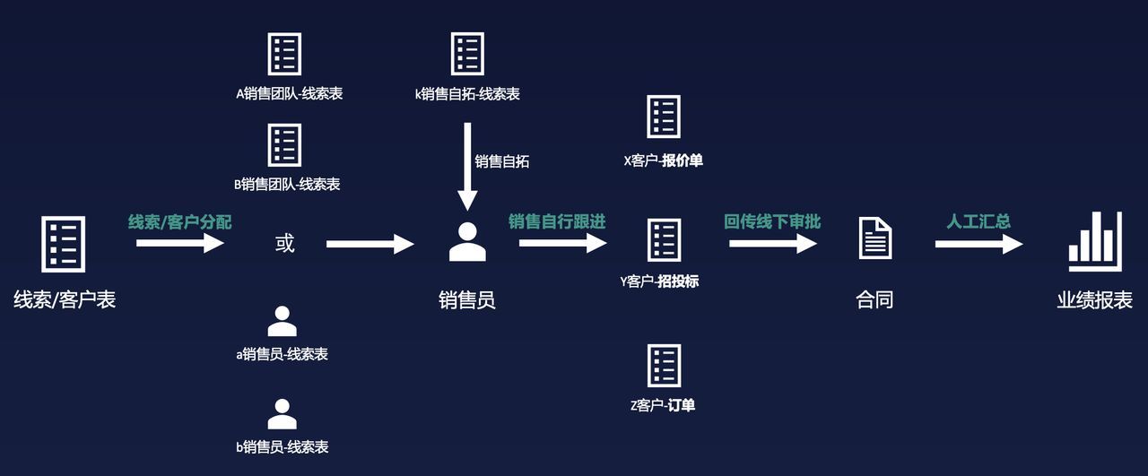 最终企业掌握的数据就两个部分:起始的线索/客户基础数据,及最后的销售合同数据;