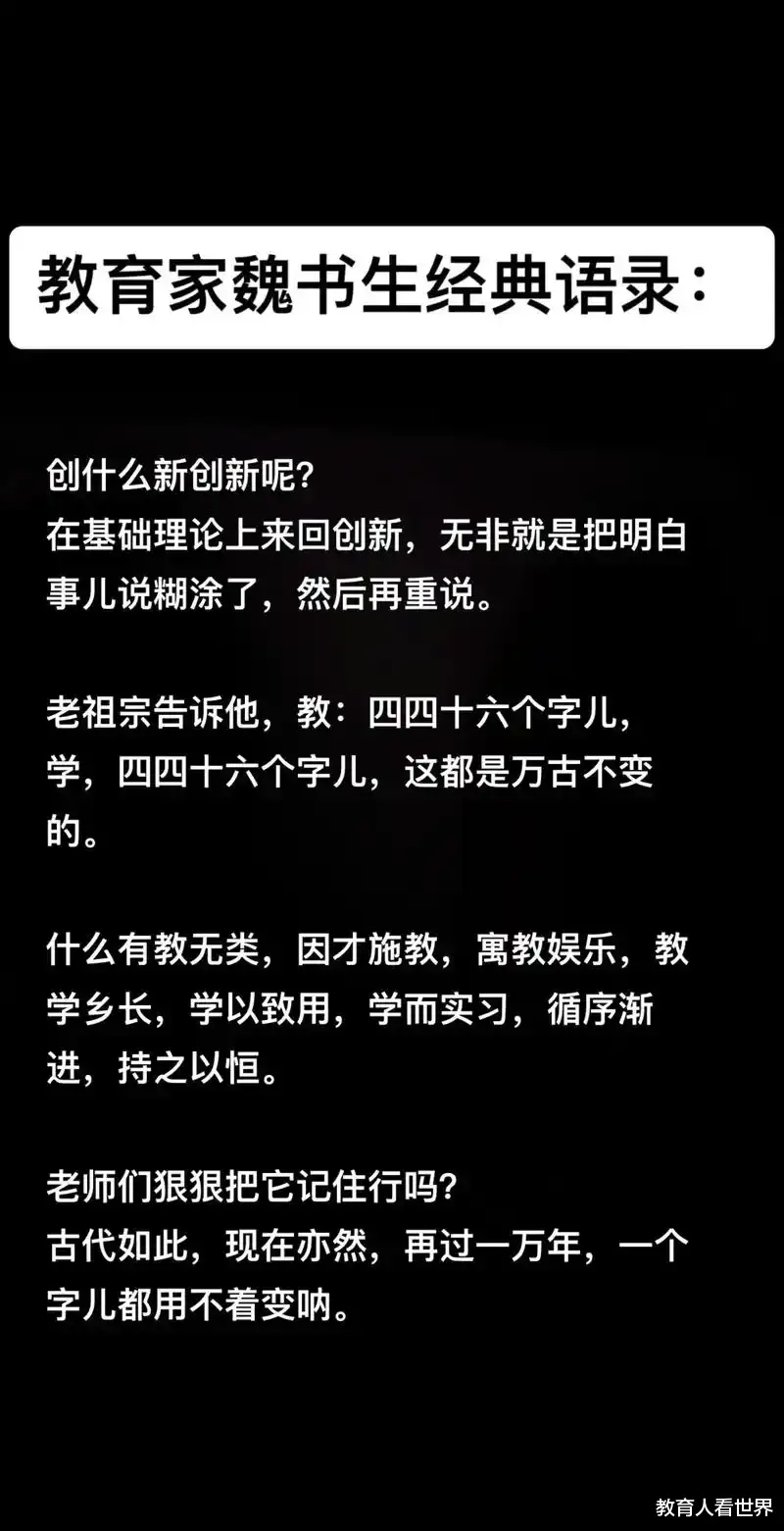 他想起教育名家魏书生曾说过的一句话,此刻觉得分外贴切:基础教育搞什么创新,啥折腾,简单变复杂。是啊,他看着眼前这一大堆“同课异构”、“融合课”、“AI赋能”……每一个他还没完全整明白,下一个就已经在路上了。这种疲劳战术,让他彻底放弃了追赶的念头。他选择了“躺平”,用一种近乎倔强的方式,守着他那套“最初的教学方式”,颇有点“爱咋咋地”的豁达。
