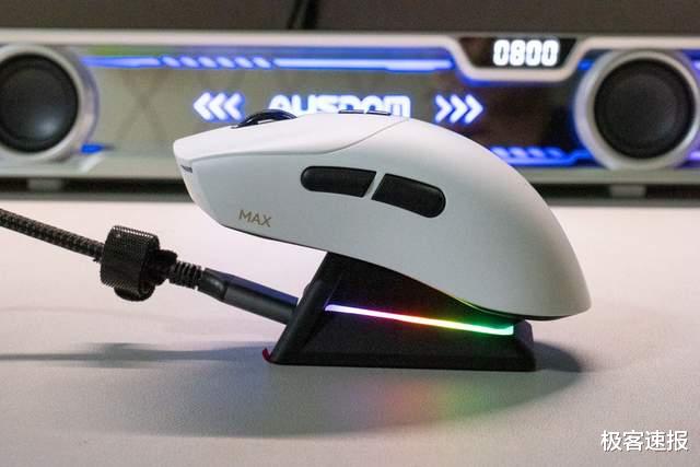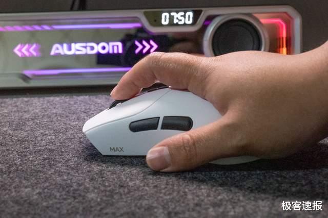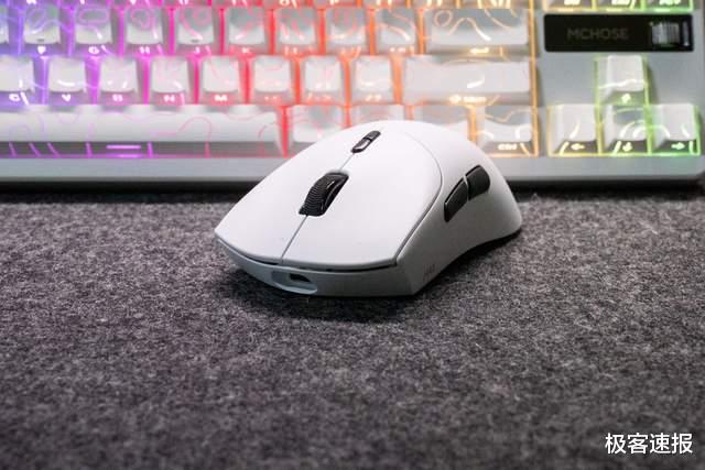 鼠标的手感非常饱满,但隆起适度不会顶手。左侧的收腰稍有些内倾,有更好的掌控力。左右键的凹陷设计也让手指的定位感更加清晰。鼠标的重心居中,并且轻量化设计不会很累手。按键的手感是那种轻盈爽脆的感觉,回馈清晰。