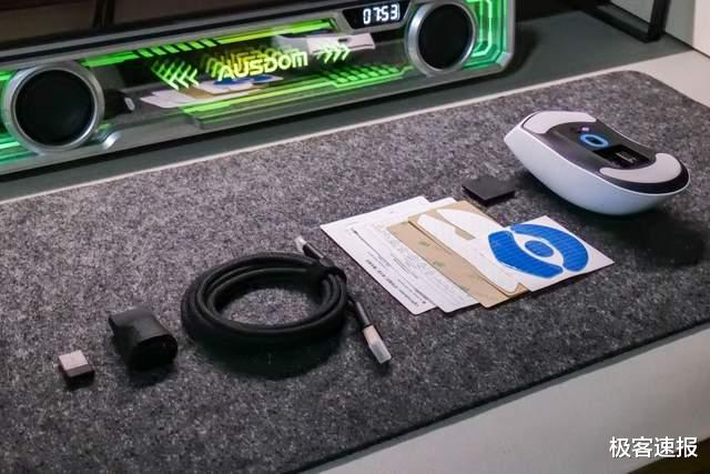 作为有线/无线双模鼠标,附件中赠送了无线接收器和伞绳数据线,另外还有一个USB转接器,有了它就不必将无线接收器插在主机箱上面,消除了信号干扰,让信号更加稳定。数据线也是镀金的接头,并且有信号屏蔽层,一切都是为了提升极致性能,可见其匠心。