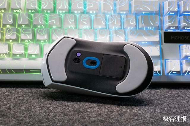 并且鼠标脚垫的倒角弧度也经过了重新设计,在鼠标垫上面横移更加顺滑。鼠标的底部有一个电源开关,DIY独立键可作为自定义键通过驱动进行自定义。另外用于收纳接收器的收纳仓上面还有一个磁吸盖板,可以替换为无线/触点充电模块,实现无线/触点充电功能。
