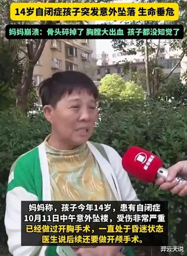 近日,据河南电视台都市频道报道,一位来自河南的母亲哭诉,14岁的自闭症儿子在10月11日中午意外坠楼,生命垂危的新闻引发众多家长关注和同情。