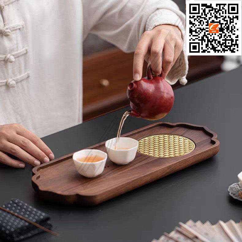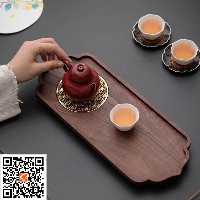 在快节奏的日子里,能让时间慢下来的,往往是一泡热茶、一方好盘。就像这张图里的黑胡桃木茶席——朱红茶壶卧在描金纹里,茶雾裹着暖香漫开,连木纹都像在轻声说:「坐下来,好好喝杯茶吧。