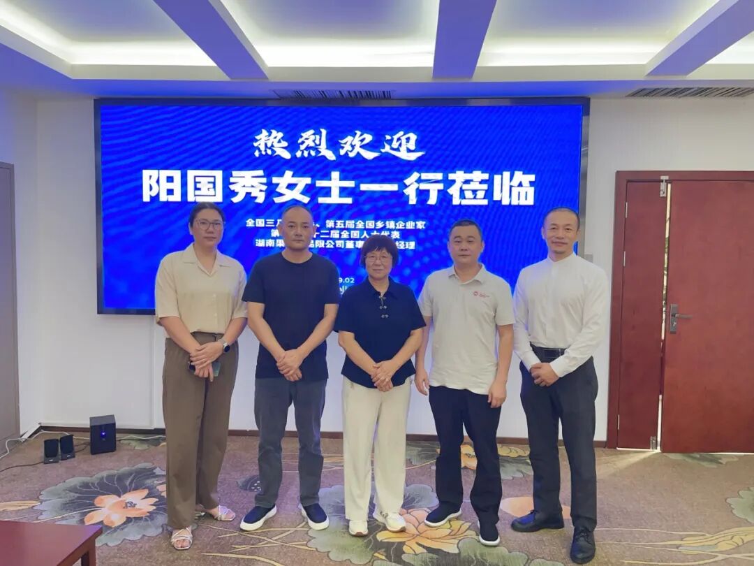 9月2日上午,全国三八红旗手、第十一及十二届全国人大代表、湖南省果秀集团(以下简称果秀)董事长阳国秀一行到访湖南省非公企业投资商会。商会第三届会长候选人、中南大学中国式现代化品牌发展研究院执行院长梅任重热情接待并主持座谈。双方围绕商会换届筹备、品牌建设规划以及果秀食品内外贸一体化转型等议题展开深入交流。湖南省非公企业投资商会轮值会长、湖南安思泰建筑劳务有限公司总经理江菊新,湖南省非公企业投资商会副会长、长沙金裁神服装有限公司董事长迟增禄,湖南果秀食品有限公司总经理助理黄玉兰等共同参会。