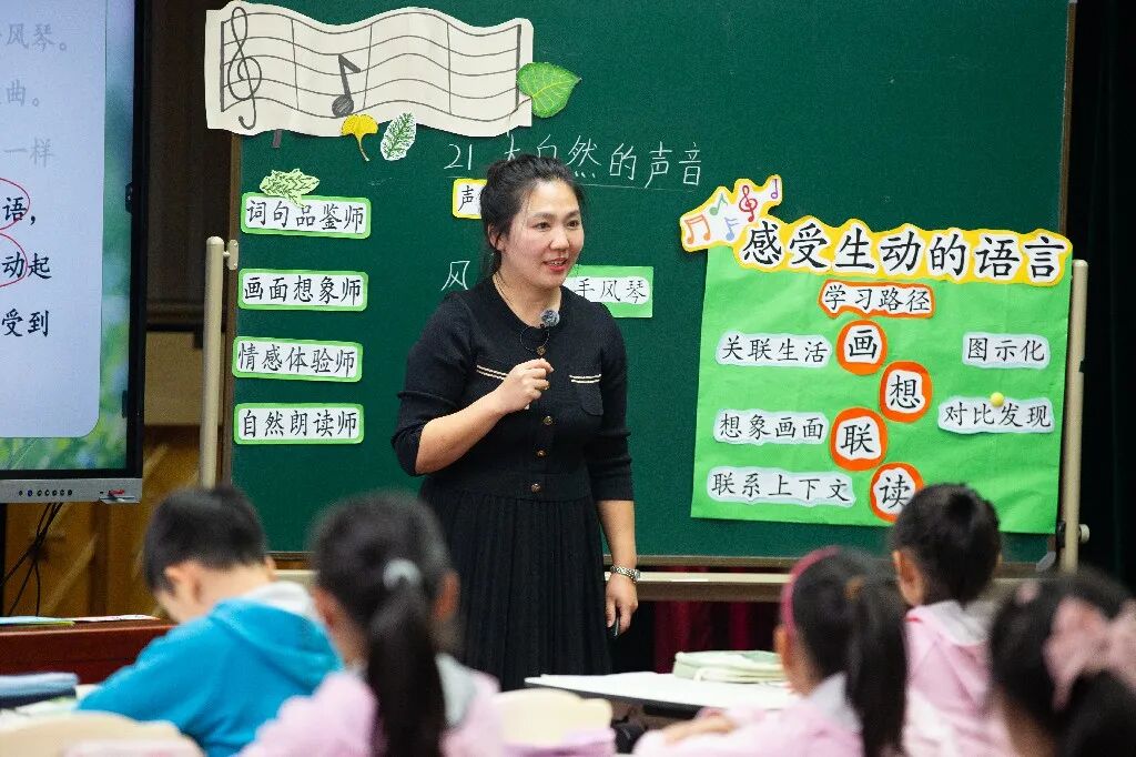 余婷老师执教的《大自然的声音》一课,以阅读圈为核心教学框架,呈现了一个层层递进的元认知实践课堂。课程伊始,余老师通过优美的范读与启发性的提问,引导学生初探“大自然中有哪些美妙的声音”,迅速激发起学生的阅读兴趣。