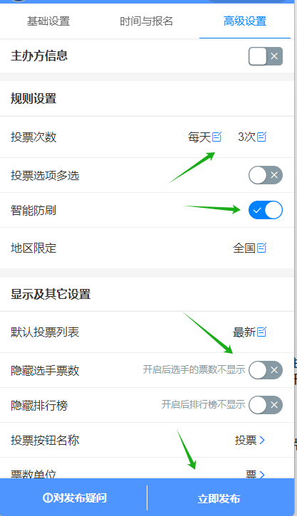 依照小程序提示逐步填写内容,如活动标题要简洁明了,精准传达活动主题;设置投票时间,明确活动起止期限;制定投票规则,包括每人投票次数、开启防刷机制等,确保活动公平有序进行,完成后发布活动。