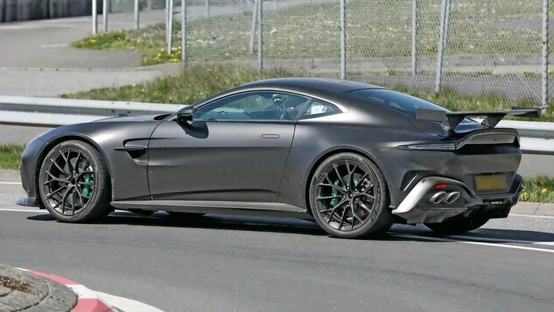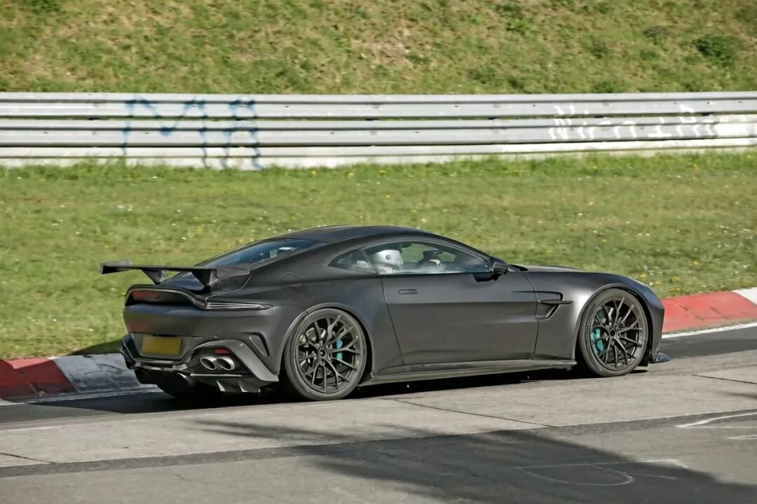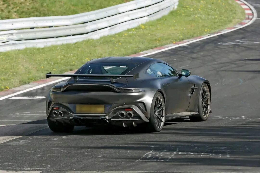 阿斯顿·马丁正在纽博格林赛道对一台Vantage原型车进行测试,看起来像是一款调校更激进的赛道版本。这台车配备了八根排气管和一个固定式大尾翼,哪怕只是路过,也足以吸引所有人的目光。