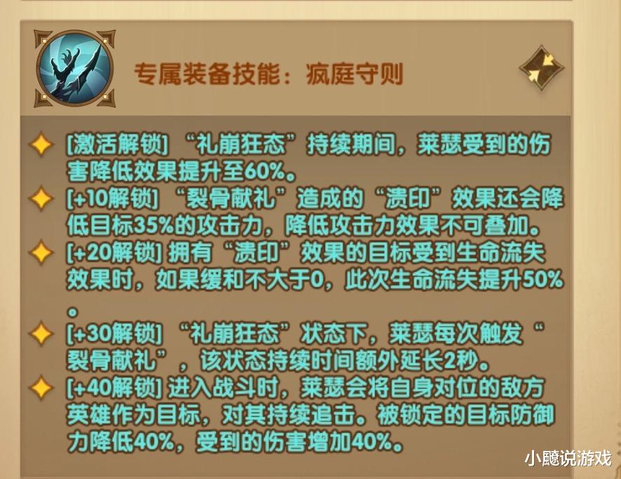 更离谱的是叠层效果,要是已经在“礼崩狂态”里再开大招,血流失直接多 40%,还能减伤 30%,输出生存一起涨。配上专属装备激活的 60% 减伤,狂态期间简直是打不动的存在,站着跟对面硬刚都不慌。