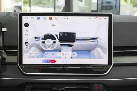 内饰与空间:实用主义与科技感并存进入车内,12.9英寸悬浮式中控屏(豪华型升级至15英寸)成为视觉焦点,其分辨率和流畅度均达到主流水准,搭配10.25英寸全液晶仪表盘,科技氛围浓郁。材质方面,仿皮座椅与软质搪塑材质的组合在触感和视觉上保持了大众一贯的严谨风格。中控台布局简洁,物理按键数量精简,旋钮式怀挡设计虽需一定时间适应,但释放了更多储物空间。空间体验方面,以身高178cm的体验者为例:调整好前排驾驶坐姿后,头部空间剩余约一拳,后排腿部空间则达到两拳以上,膝部活动余量充足。座椅填充物偏硬,但支撑性良好,长途驾驶不易疲劳。后备厢常规容积未明确标注,但通过40:60比例放倒后排座椅后,可扩展至接近纯平状态,实用性显著提升。此外,后排空调出风口、双区温控以及手机无线充电功能(支持40W快充)等配置,进一步优化了日常使用体验。