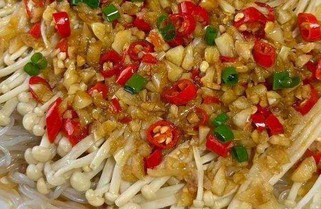 这道菜的关键在于蒜蓉酱的调配和蒸制时间的把握。蒜蓉要炒至金黄但不能焦糊,这样才能激发出最浓郁的香气。蒸制时间不宜过长,否则金针菇会失去脆嫩的口感。