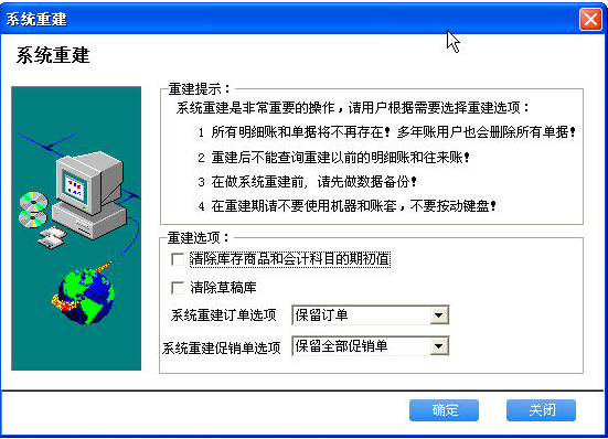 3、系统重建订单项;指进货订单与销售订单;选择保留订单,则订单保留,反之则清除所有订单。