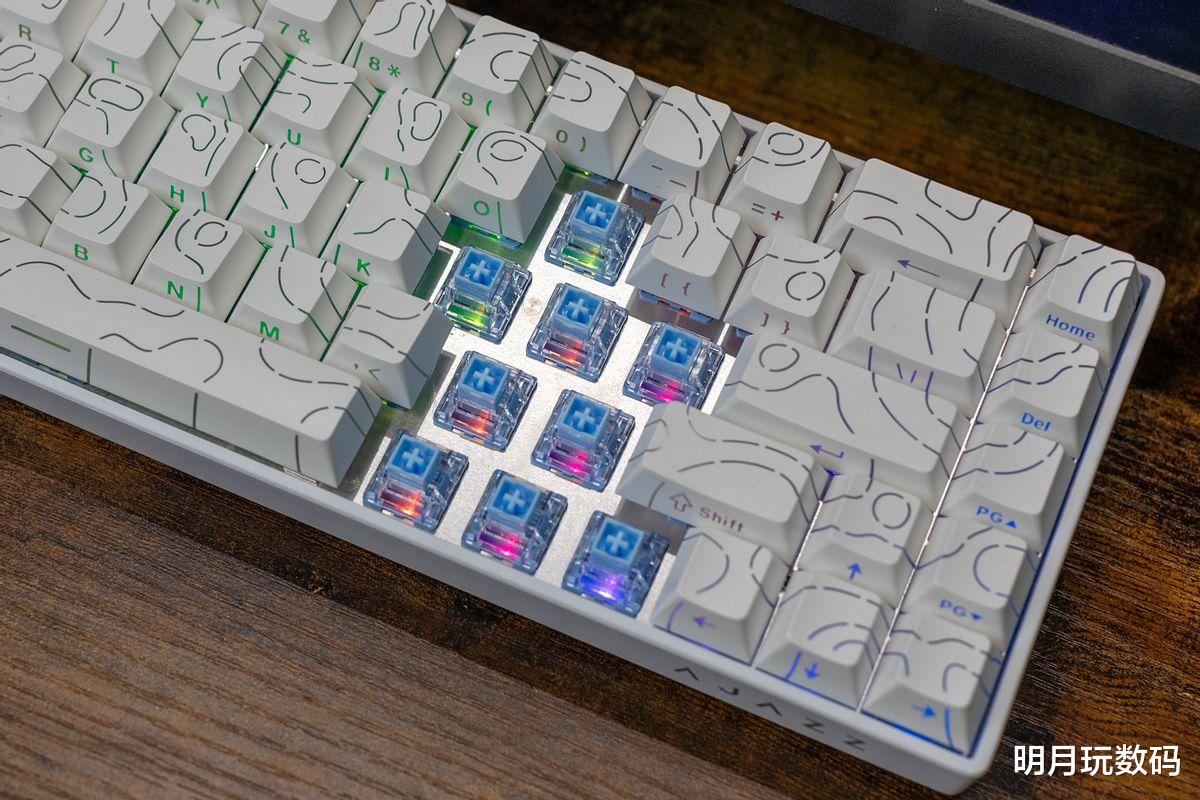 黑爵AK680V2的外观尺寸只有316.15x101.60mm,比我原来的键盘小了近100mm,可以给我的桌面留出了更多空间。而且,在配色方面,除了常规的黑色和白色外,还有星晚灰和冰河蓝,以及我拿到的这款等高线白色和同款的黑色。这几款价格稍有不同,可以根据自己的喜好自由选择。