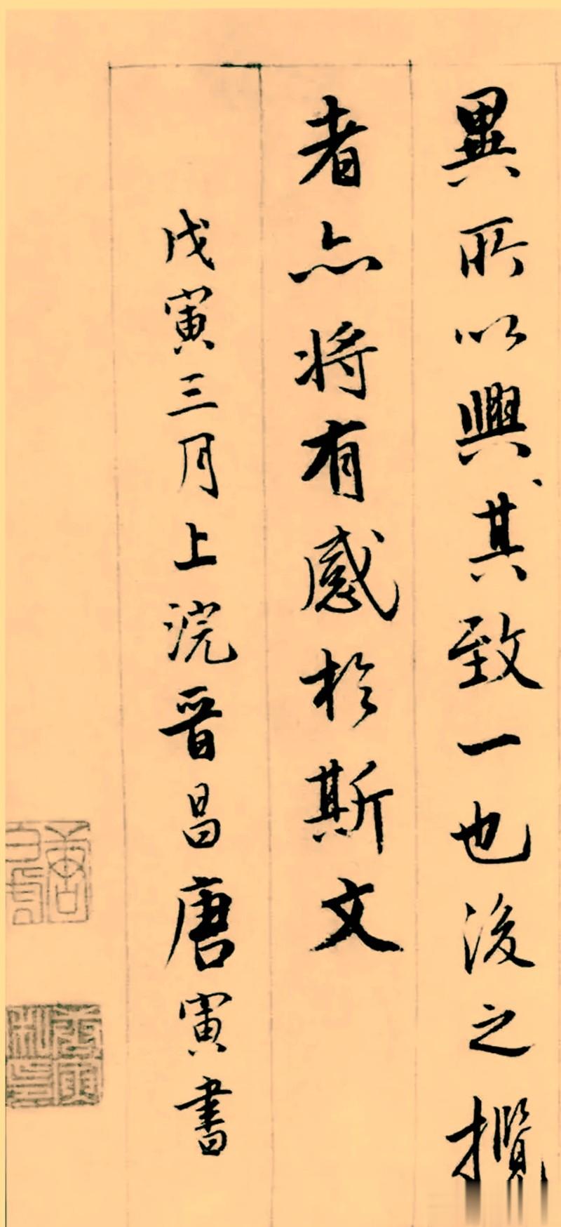 此作可贵处在于:既承袭了原帖的清雅气质,又融入了书家自身的艺术语言。非奴仆般的模仿,而是知己间的对话。唐寅以自家笔法写晋人风流,实现了与古为徒又自出机杼的艺术平衡,展现了明代文人书法“借古开新”的典型特征,为后世留下了临摹与创作关系的精彩范本。