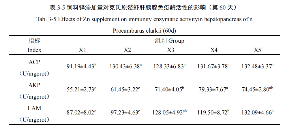 消化酶活性:X4(60mg锌/kg)组的肝胰腺和肠道消化酶活性达到峰值,包括脂肪酶、淀粉酶和胃蛋白酶,其活性显著高于对照组(P<0.05)。