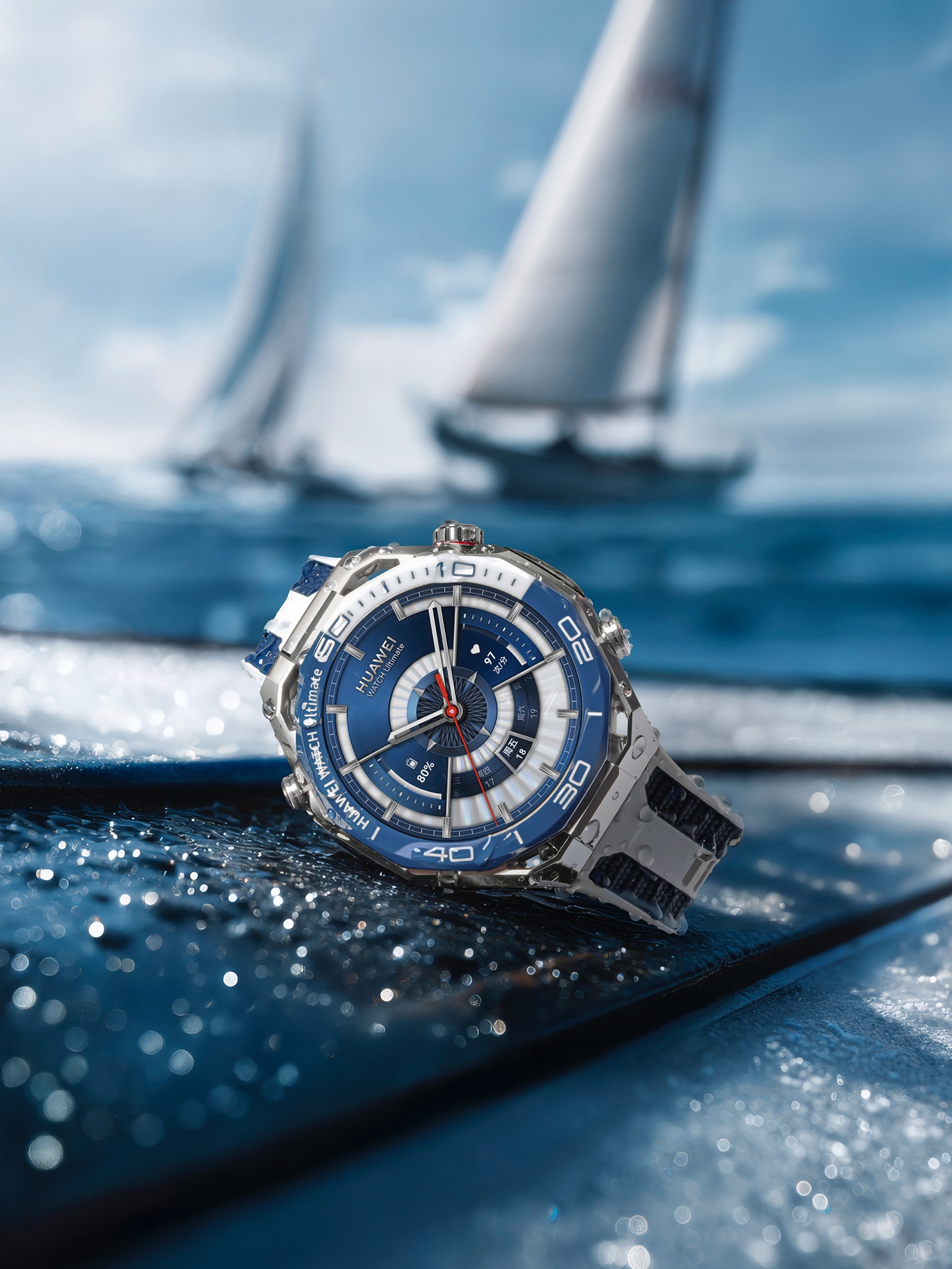 审视一款高端腕表,材质往往是第一道门槛。华为WATCH Ultimate 2 非凡探索在工艺上展现了极高的水准,表壳延续了超坚固非晶锆合金的高端血统,辅以超硬镀膜,质感温润且坚韧。更为吸睛的是其双色纳米微晶陶瓷表圈,特别是蔚海蓝配色,采用蓝白双色波纹状设计,仿佛将浩瀚深海凝练于方寸之间。