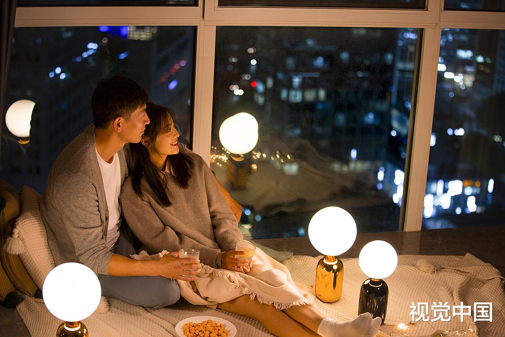 女人揽着男人的脖颈,亲昵地娇笑: