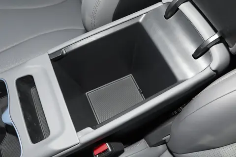 空间的“灵活性”,直接关系到家庭出行的舒适度。2026款海豹07DM-i车身尺寸为4995*1900*1495mm,2900mm的超长轴距为内部空间打下扎实基础。我们邀请身高182cm的体验者实测:前排调整至舒适驾驶位后,头部空间约有一拳两指,肩部空间1454.5mm、肘部空间1509.9mm,手臂自然搭放时无局促感,驾驶时视野开阔;保持前排位置不变,后排腿部空间超两拳,膝盖与前排座椅靠背间可轻松容纳一个背包,头部空间也有一拳余量,即便长时间乘坐也不会感到压抑。储物空间设计同样贴心,车内29个储物分区覆盖全场景需求:门板手机槽可固定手机,避免行驶中滑动;前排双杯托适配不同尺寸水杯,杯托内防滑垫能防止颠簸时倾倒;副仪表台下方储物格容积充足,可容纳13寸笔记本电脑与充电设备;465L后备箱常规状态下能放下1个30寸+3个20寸行李箱,后排座椅按比例放倒后,还能装下婴儿车、露营帐篷等大件物品,满足家庭出游的储物需求。