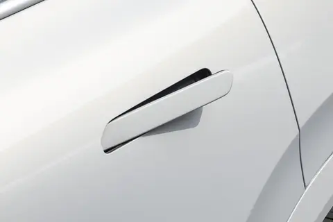 车身侧面的线条很讨巧。修长的腰线从车头贯穿到车尾,没有刻意追求夸张的曲面,反而衬得整车优雅又不失大气。轮毂造型是点睛之笔,大尺寸设计与车身比例完美契合,既好看又提升了行驶稳定性。弹出式门把手不只是为了酷,实打实地降低了风阻,对续航是个隐形加分项。