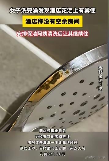 近日,武汉张女士住宿北京全季酒店,当她朋友洗完澡时,发现花洒存有粪便恶心事件,立即联系媒体曝光,维护消费者自身权益,引起广泛关注。