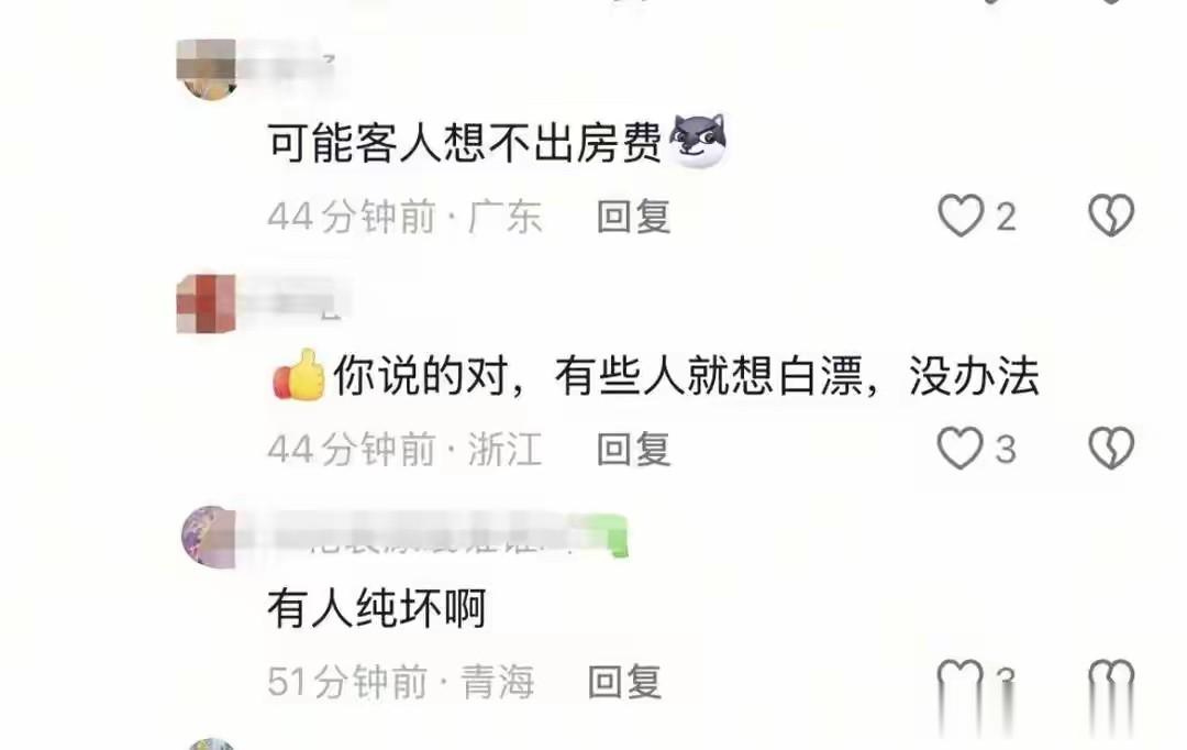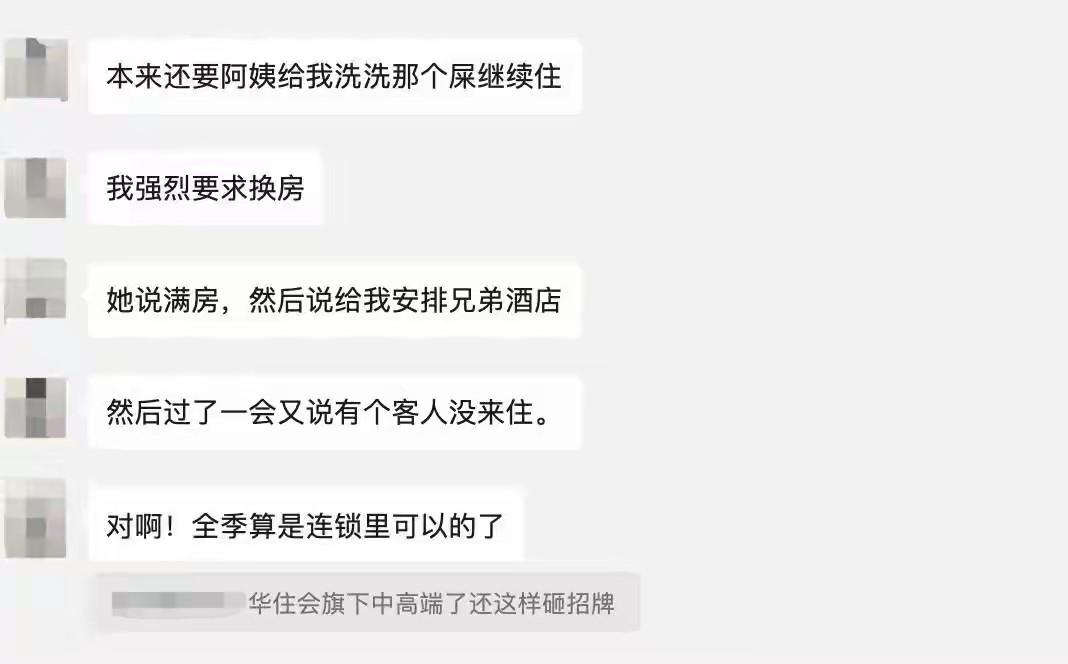 作为华住酒店的老顾客,张女士如是说:“如果我看到床单上有头发或者其它异物,我觉得在所难免,但现在这个(异物)是排泄物,而且我们已经洗澡了,怎么知道异物有没有携带病菌,真的很恶心。”她表示,以后不会再来全季住了。