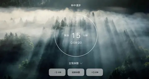 其中,最让人心动当然是沃尔沃全新XC70打造的休憩模式,车辆静止时一键开启,可设定0-60分钟或不限时时长,搭配林中漫步、篝火围坐等四种主题,通过视、听、触觉协同营造沉浸体验。启动后遮阳帘、车窗等自动关闭,座椅靠背调至130°,屏幕与氛围灯亮度降低,结束后自动恢复初始设置,堪称移动的“治愈空间”。