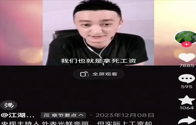 他说,虽然他们是央视的主持人,但大家拿的都是死工资,一个月不会超过5位数,也就是差不多7000!