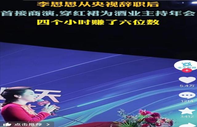 离职以后,李思思身穿一身红色礼服,为某企业主持大型年会,有消息称,仅仅4小时,李思思就赚了6位数。