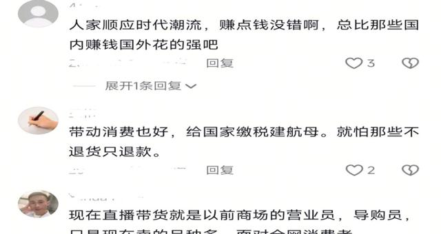 然而,另一些网友却说,赚钱无可厚非,顺应时代潮流直播带货并没有什么问题,这样的做法还可以侧面带动消费。