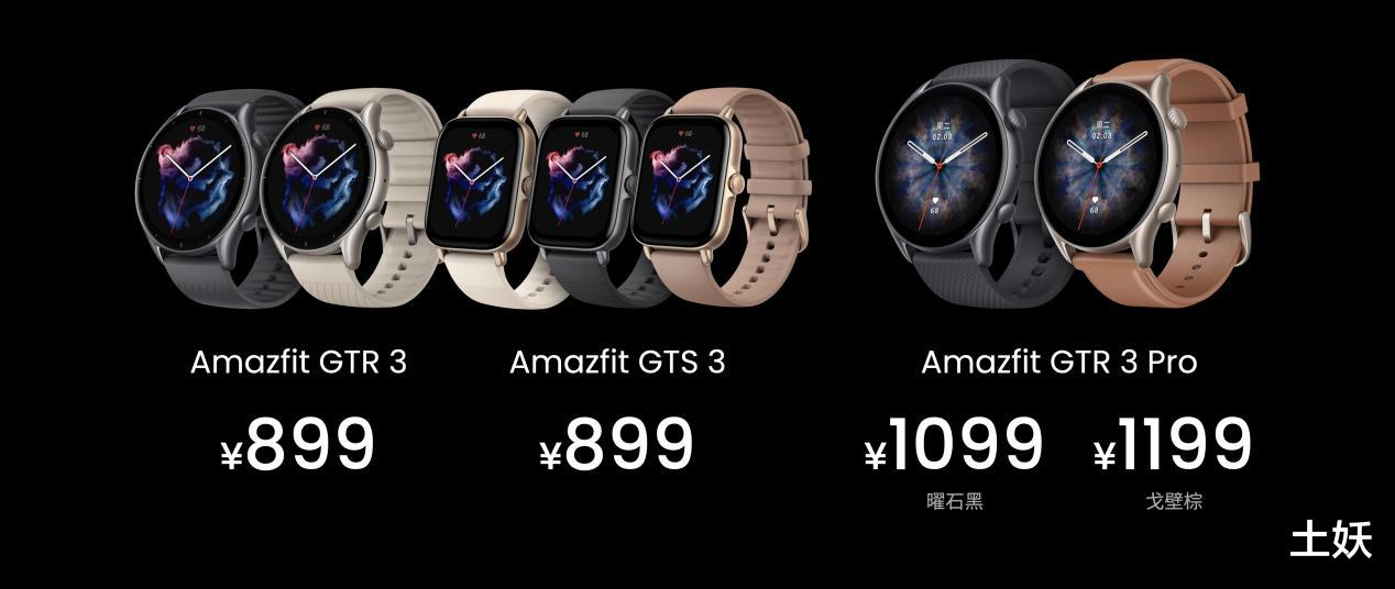 Amazfit GTR 3 共有曜石黑、云母灰 2 种配色,售价 899 元;Amazfit GTS 3 共有曜石黑、薄雾白、柔砂棕 3 种配色,售价 899 元;Amazfit GTR 3 Pro 曜石黑版售价 1099 元、戈壁棕版售价 1199 元。上述四款新品已于 10 月 12 日 17:00 点在 Amazfit 跃我京东、天猫、小米有品、有赞商城、抖音商城、顺电正式发售,Amazfit 跃我线下各大授权门店、直营体验店同步开售,新品上市期间更可享首发优惠价。