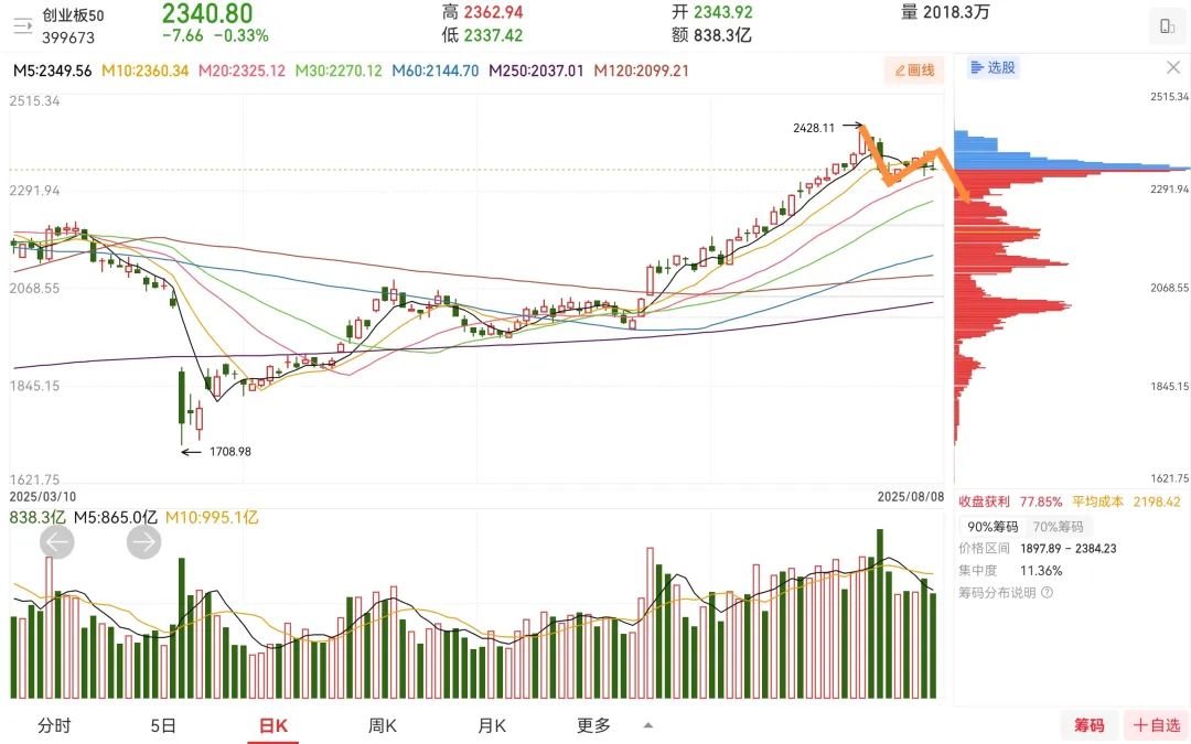 创业板指是上周反抽力度偏弱的指数,未能突破前高符合预期。从结构上看,大概率处于ABC调整走势中,需等待其跌破7月31日低点后,才具备低吸考虑的条件。