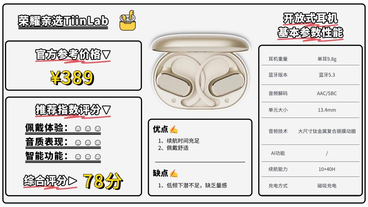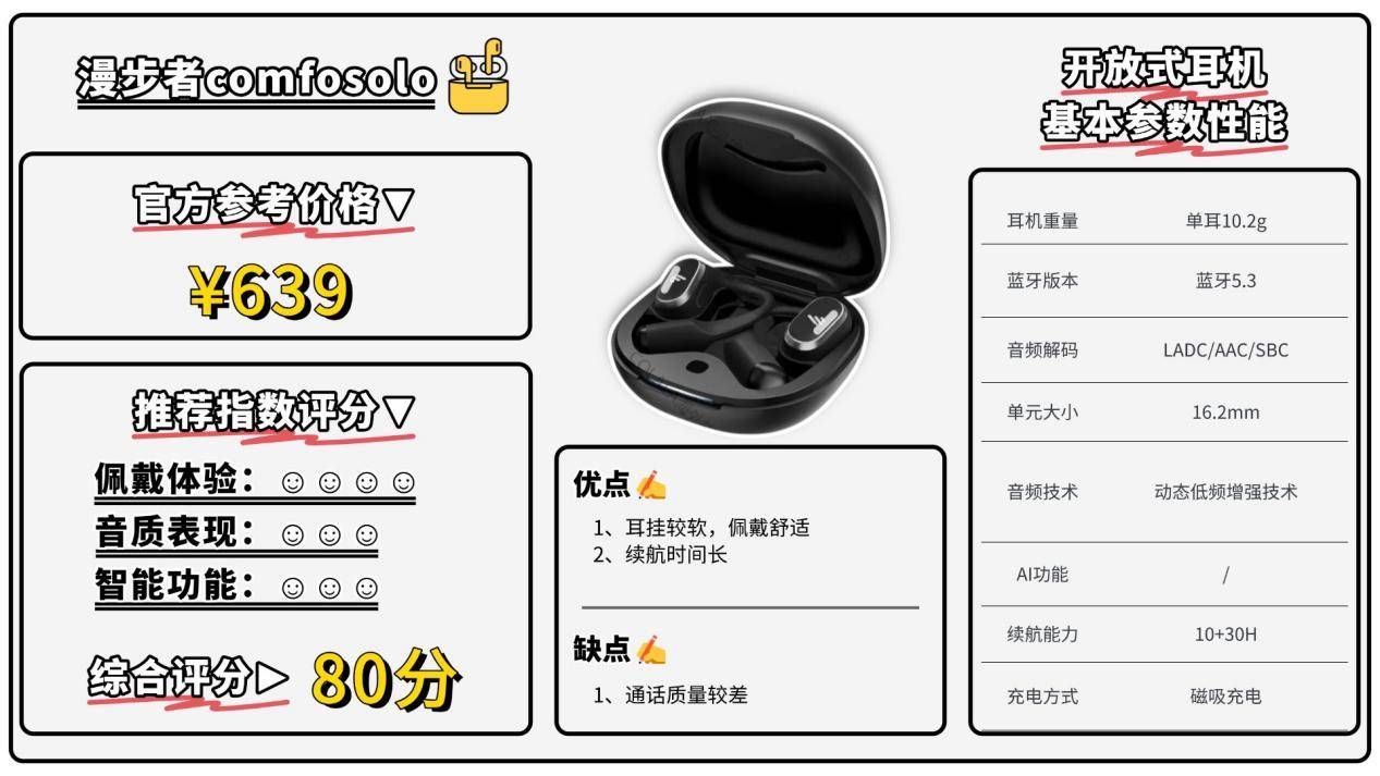 实测数据显示,低频增强124%,整体清晰度提升52%,漏音抑制率达61%,音质表现已可与千元级国际旗舰媲美,堪称开放式耳机音质巅峰。