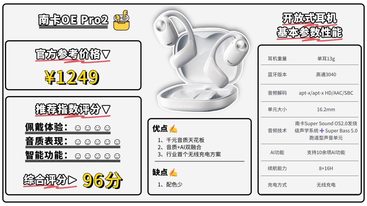 南卡作为开放式耳机领域的领军品牌,深耕声学技术已逾13年,一直致力于探索更先进的开放式听觉体验。凭借AI智能助理、零压佩戴体验、震撼细腻的音质表现,以及旗舰级硬件配置,南卡OE Pro2稳居行业第一阵营,成为开放式耳机的代表之作。