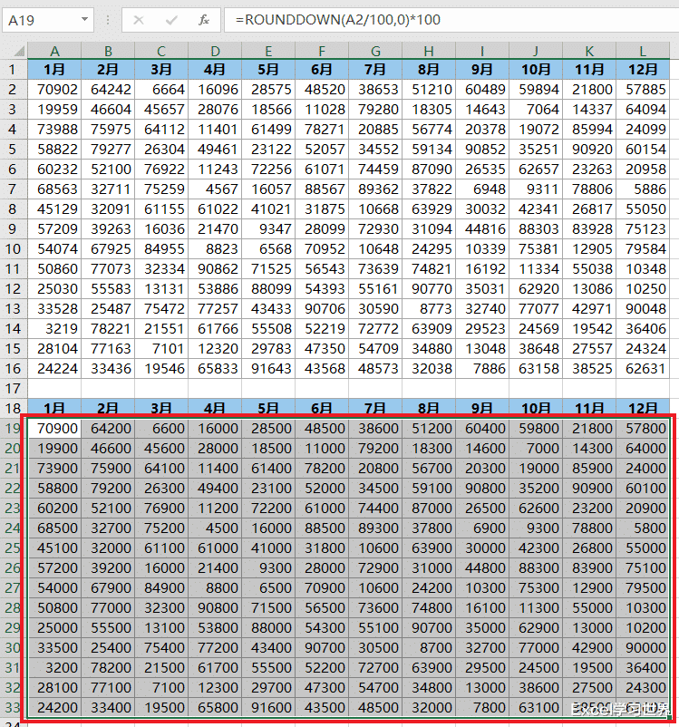 解答网友提问:如何将大量数值的个位和十位数都变成 0?