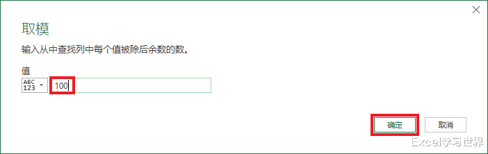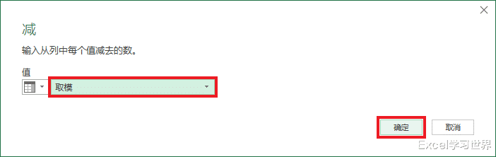 8. 在弹出的对话框中将“值”的选项修改为“使用列中的值”--> 选择“取模”--> 点击“确定”