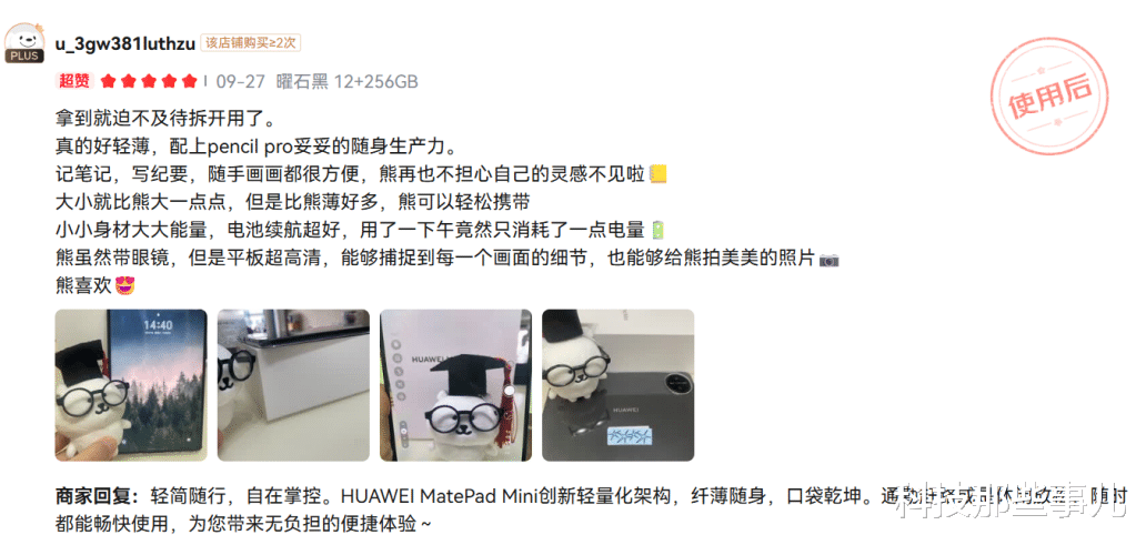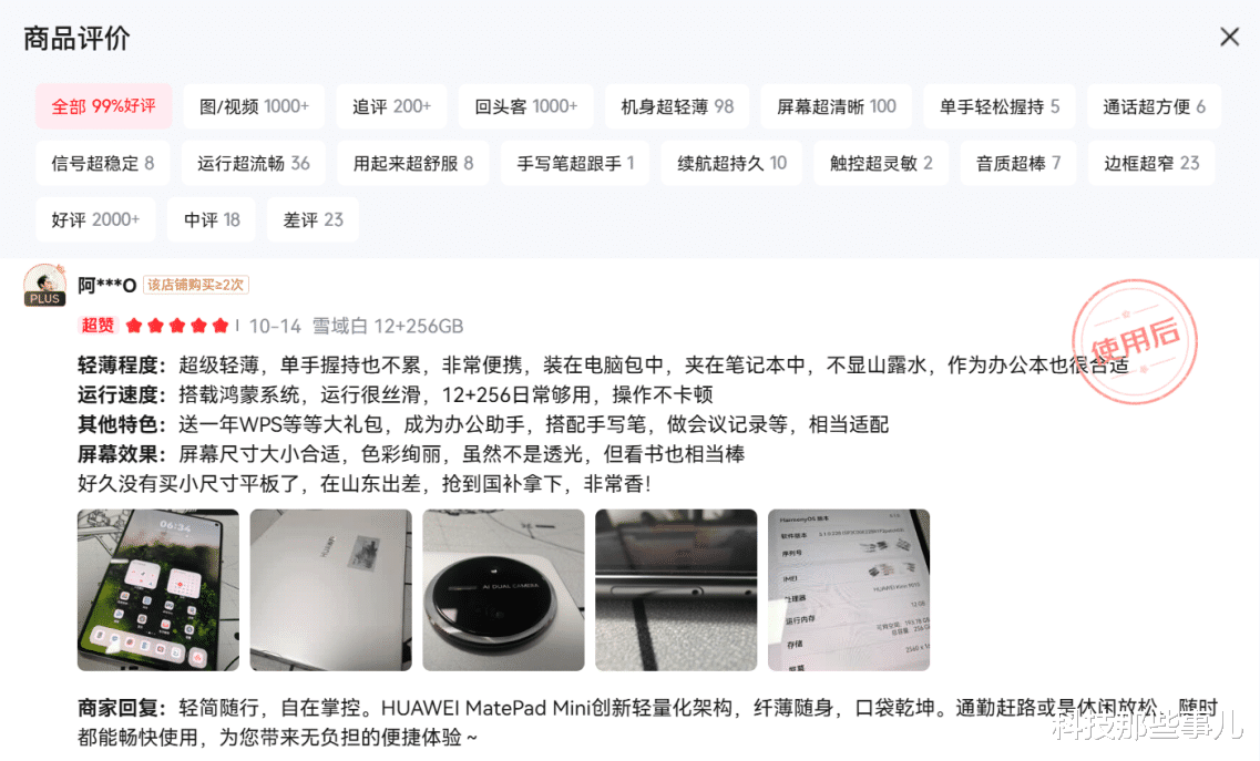 这些数据充分证明了用户对这款产品的认可。许多用户在评论中提到“轻薄便携,出差必备”“屏幕清晰,看视频超享受”,进一步推动了华为MatePad Mini 口碑的持续升温。