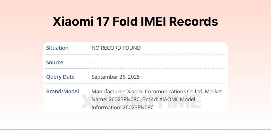 根据泄露的 IMEI/型号信息(“26023PN08C”)判断,这款手机有可能在 2026 年 2 月正式登场。