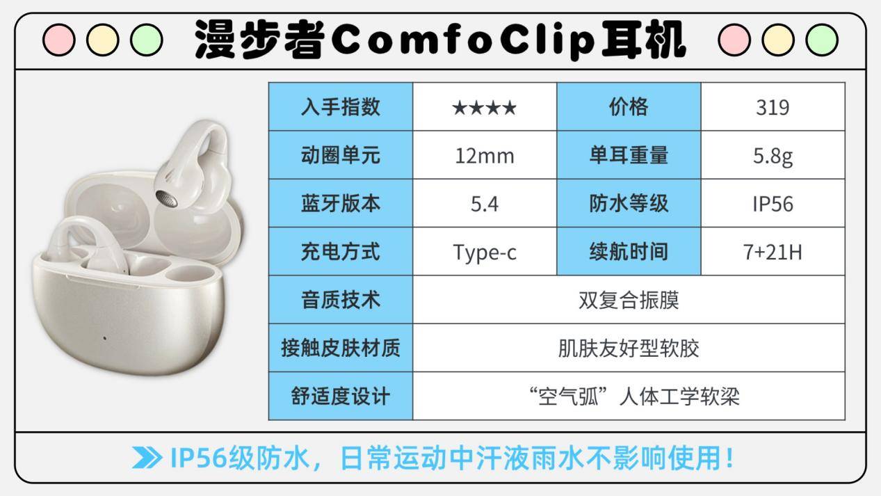 漫步者Comfo Clip外观设计简洁流畅,线条自然,既有低调的时尚感,又兼顾实用性,非常适合追求舒适和耐用的日常使用者。音质方面,中高频表现自然,人声清晰,适合听歌、通话或者看短视频,整体表现稳妥。对于低频量感要求较高的电子乐或摇滚,表现略显平淡,但对不追求极致发烧音质的用户来说,完全够用,日常听感舒适而不累耳。