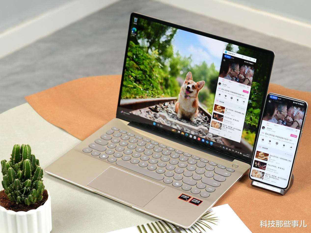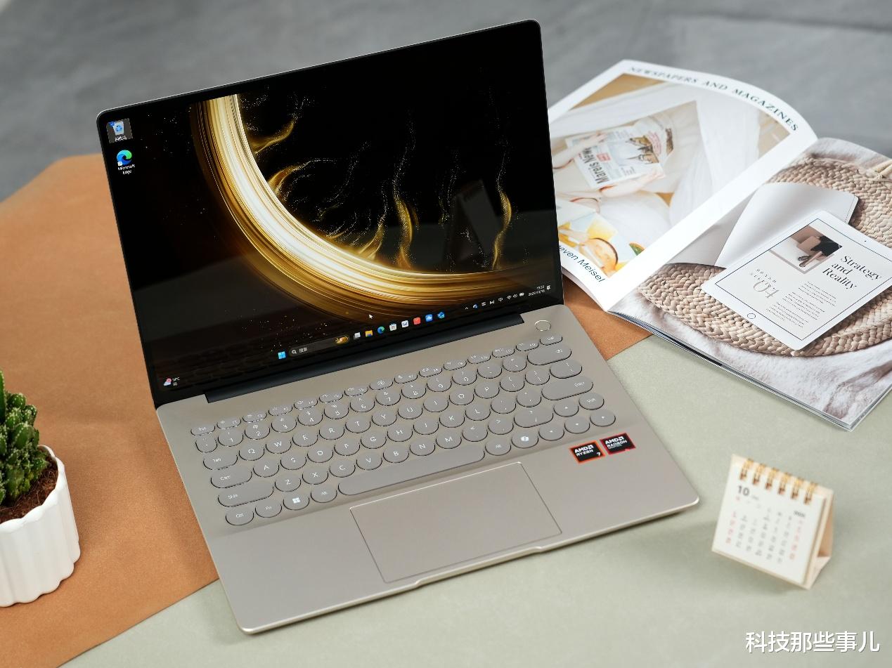 在机身颜色上,Hi MateBook 14采用了全新的“晨曦金”配色,在高雅中藏着一丝暖调,机身线条被赋予了“涟漪微曲”的轮廓,流畅自然,抹去了所有生硬的棱角,握在手中,只有温润的贴合感。